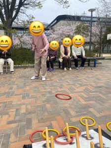また、今回は公式わなげ(スポーツわなげ)の道具を持参し、屋外で楽しみました