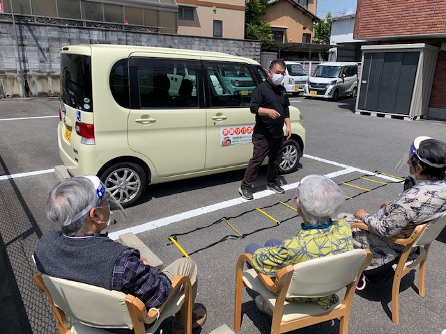 この日は天気が良かったので、外(笑顔リハぷらすの敷地内)に椅子を置いて行いました!!