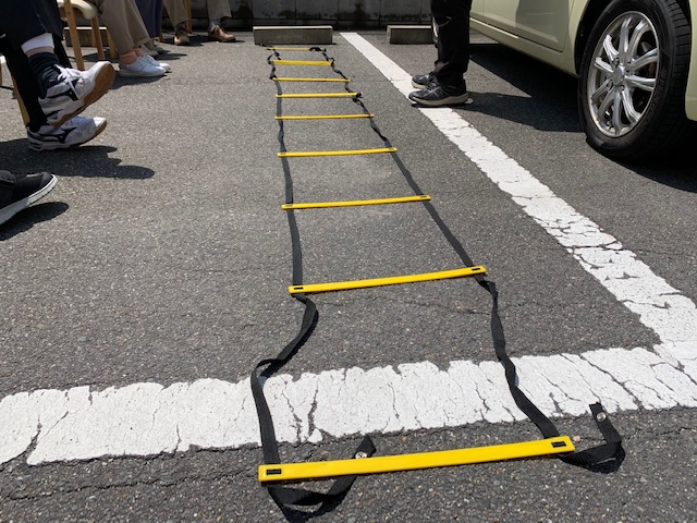 上の写真は、ラダーを使ってサイドステップを行なっている様子です!